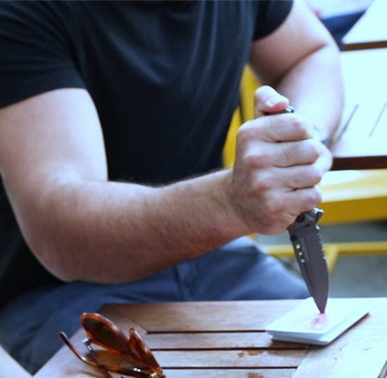 Zak Mirzadeh's Backstab is the most impossible "Stab To Your Card" trick ever! Your spectator selects a card and loses it in the pack. With nothing more than your trusty pocket knife (or your spectator's pocket knife) - you stab straight to their selection for a miraculous "Card At Number" effect!