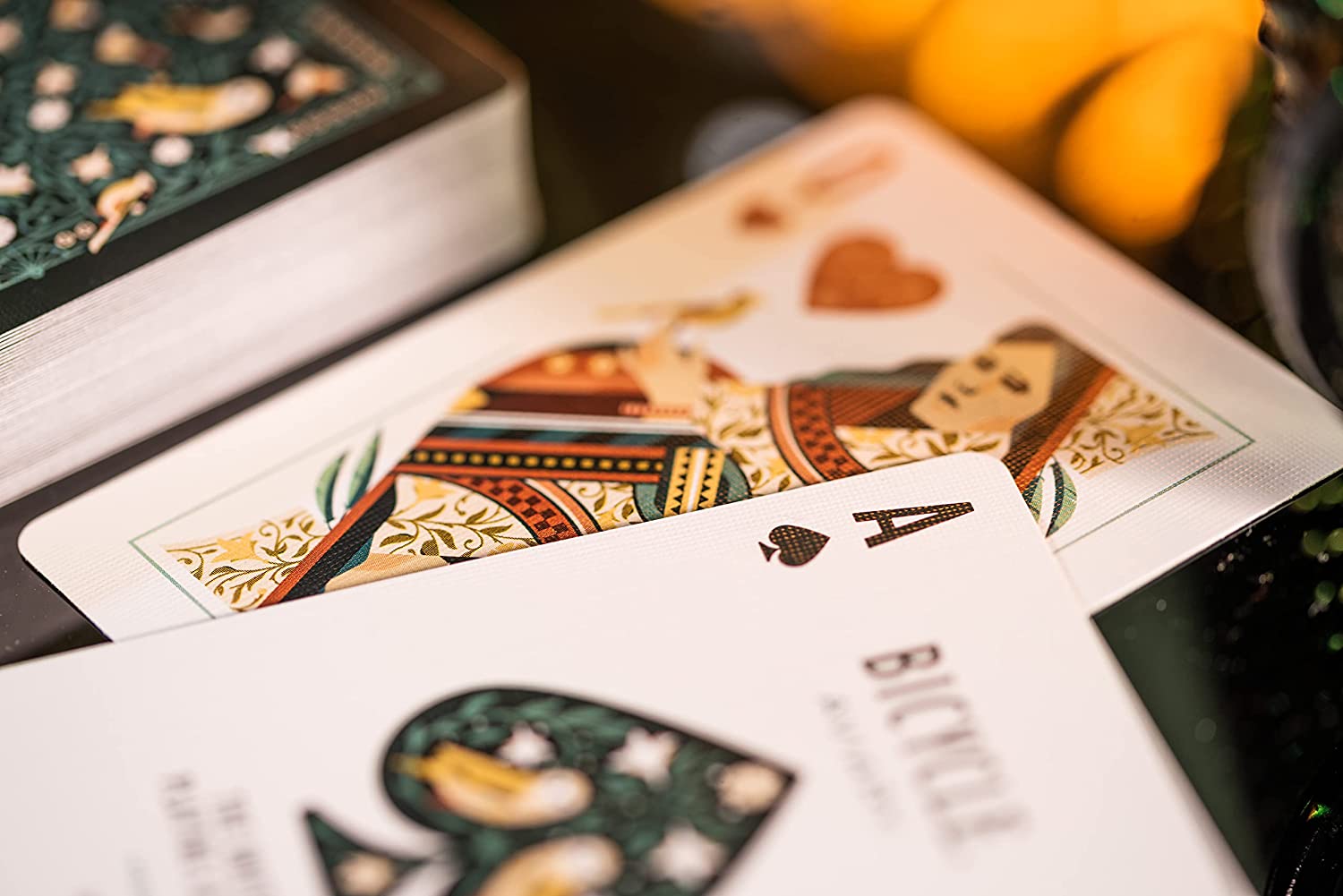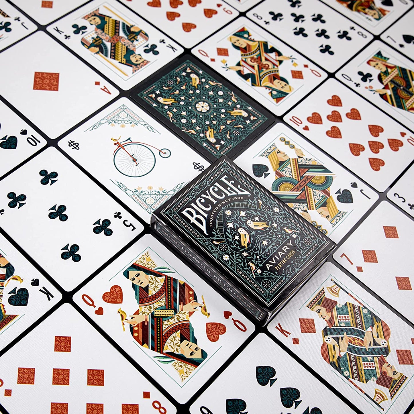 The Bicycle Aviary Playing Cards has a subtle yet elegant design and features custom illustrated faces, suits, and card backs.