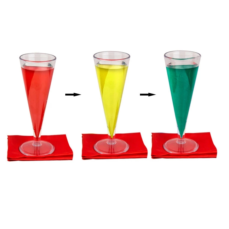 Simply cover the special water-filled champagne glass with a handkerchief, and the water transforms into red wine.