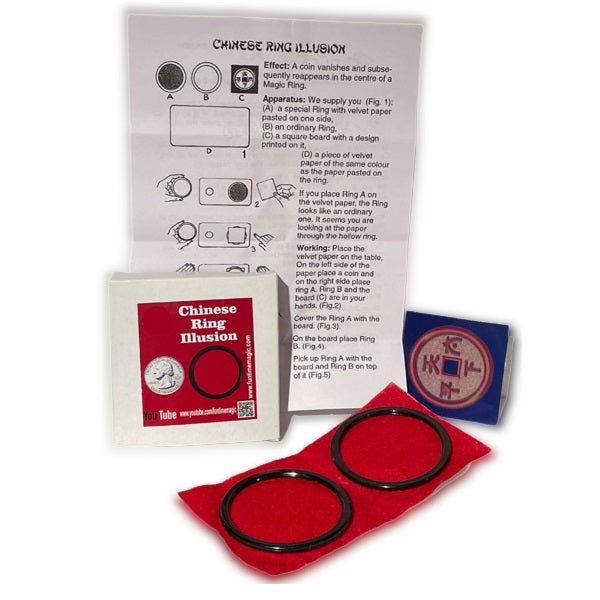 A vanished coin appears in the middle of a Magic ring. You can use the outfit supplied (two magic rings, the “mat” and the magic board) to vanish a coin, or change a copper coin to a silver one.