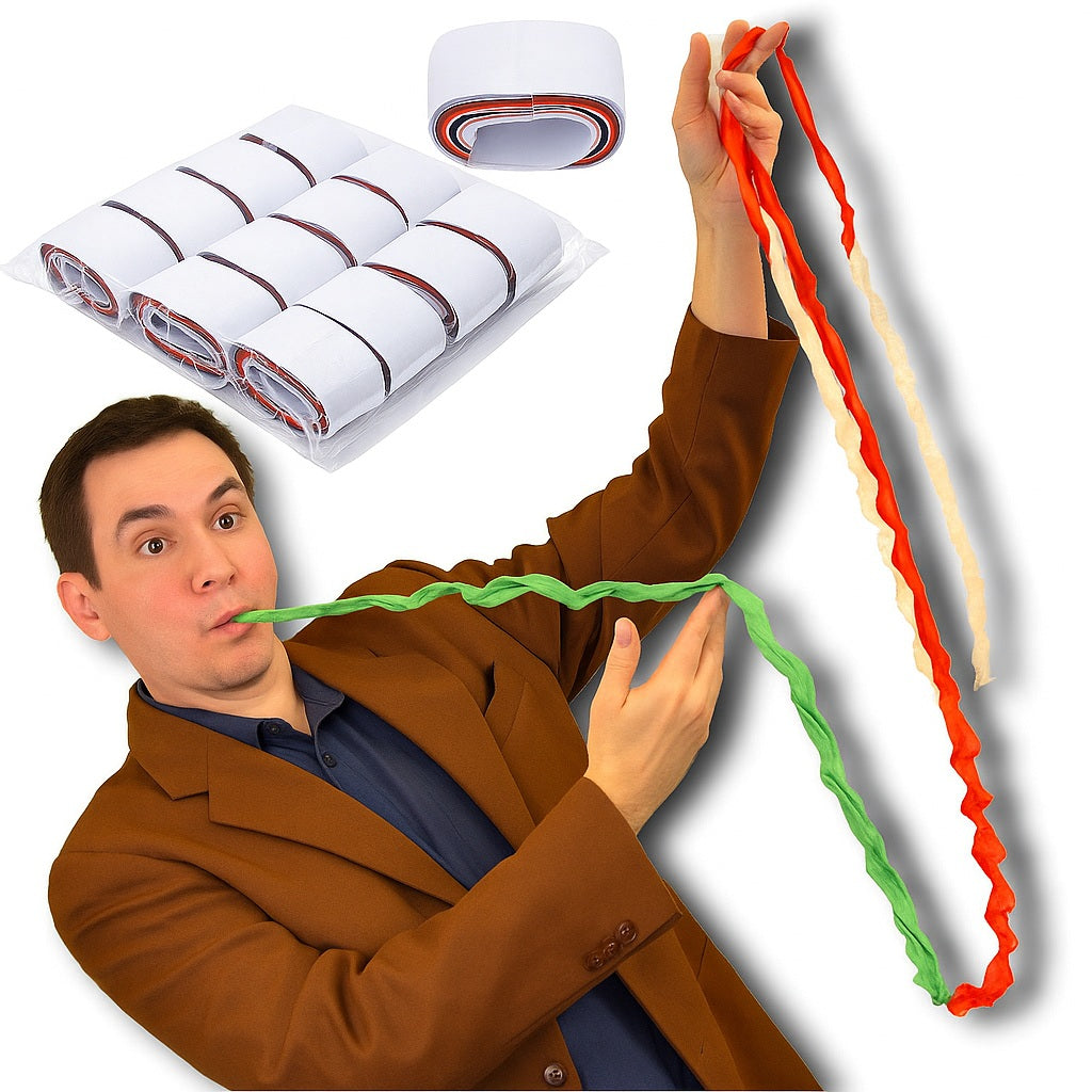 Create a moment of pure amazement as you seemingly pull a long, vibrant multicolor paper streamer from your mouth, hand, or any magical prop. This classic stage effect is a guaranteed applause-generator that adds surprise and color to your act.