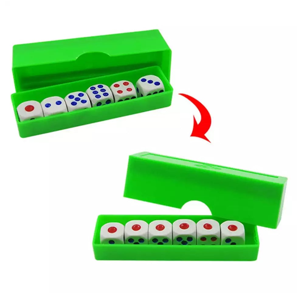 The dice are placed on the table and a spectator picks one of them,the rest of the dice are placed into the box in a random order, The lid is replaced and the magician gives the box a quick shake and when the lid is removed all the dice match the spectators chosen dice number.