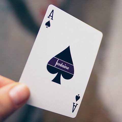 Wine Fontaines are the 10th edition of Fontaine Playing Cards. A run of 5,000 decks were made. They released a small amount of Wine Fontaines at the Guess Farmers Market as a surprise to their fans who traveled to LA for the event. Printed on crushed stock with premium finish, Wine Fontaines are one of our thinnest decks and best handling decks.