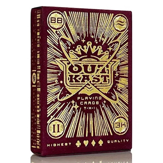 Outkast Playing Cards by Theory11 are produced in collaboration with Outkast, and features Theory 11s first ever red velvet tuck box with gold foil packaging.