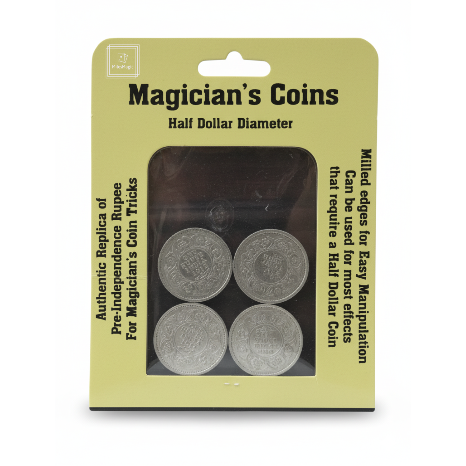 This is a professional set of 4 imitation silver pre-independence rupee coins, crafted from lightweight aluminum for smooth and easy manipulation in magic performances. Designed specifically for coin magicians, these coins combine realism with performance utility.