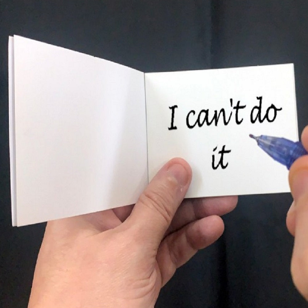 Magician reaches into his pocket and takes out a small note pad and tears a page from it. He talks about how powerful our thoughts (or will power) are and how it effects our day to day activities. He says, let me explain and then writes a sentence “I Can’t Do It” on that note and hands it over to the spectator to read and adopt this “negative thought” in their mind, and try to tear that piece of paper. The spectator finds themselves unable to do so.