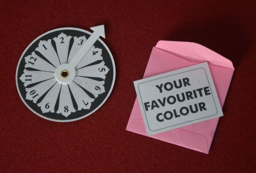 After he selects say Number 6, Now magician turns the wheel and counts 6 places away from his selection, and whatever color comes that will be the spectators' selection.