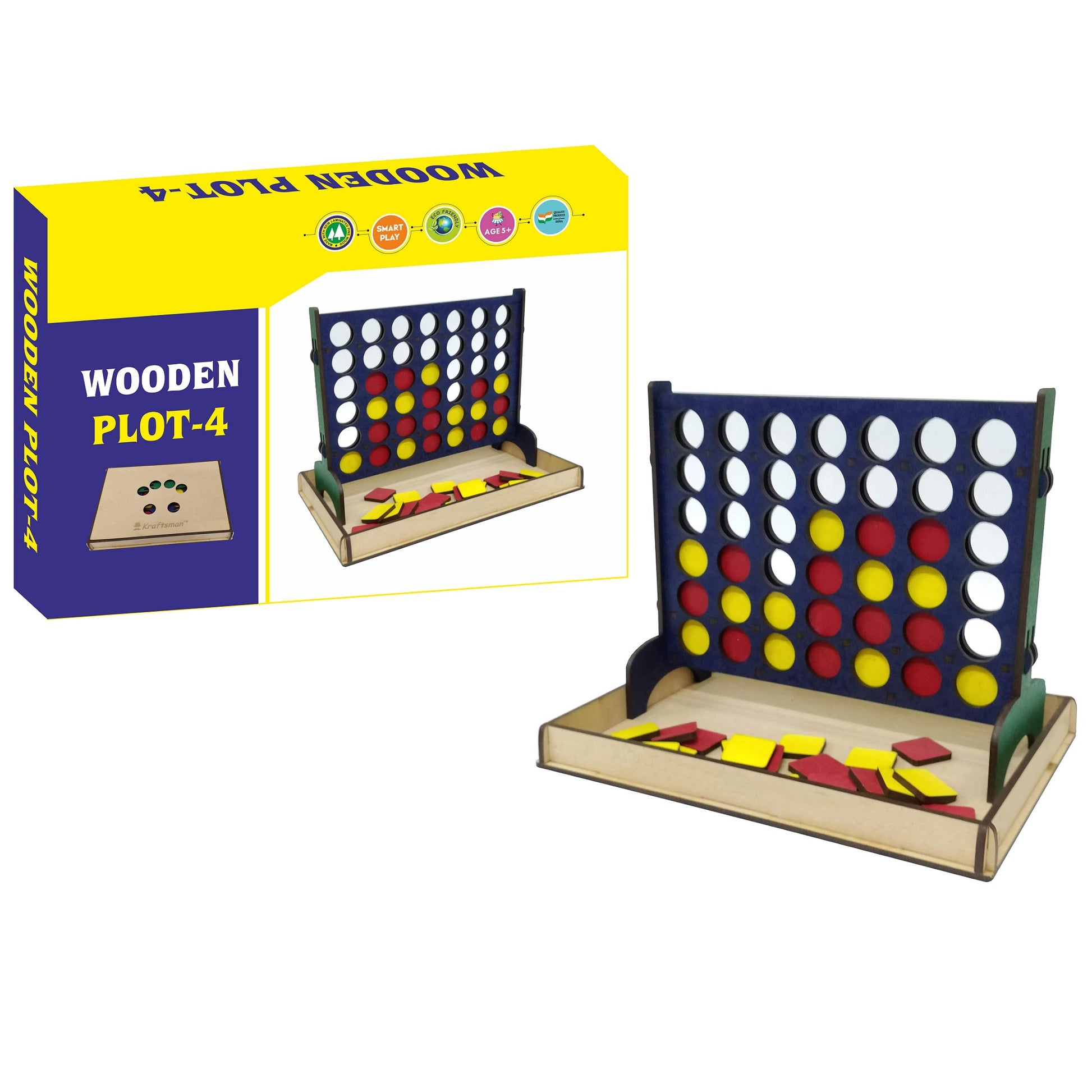Wooden Plot 4 Game | Get 4 in a Row Board Game