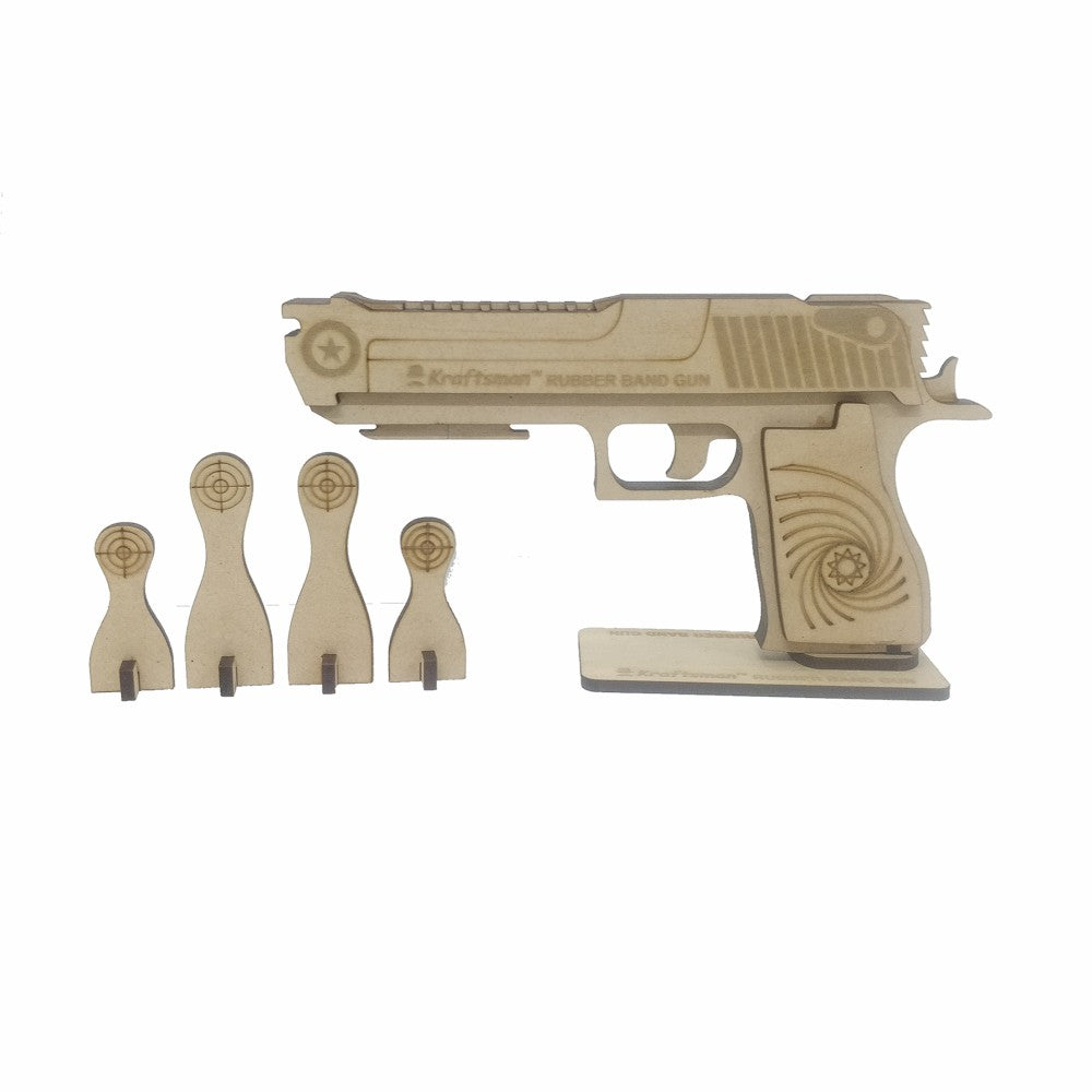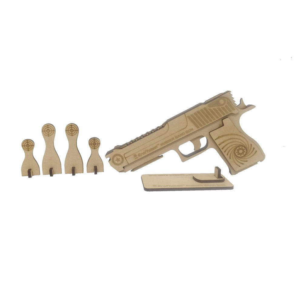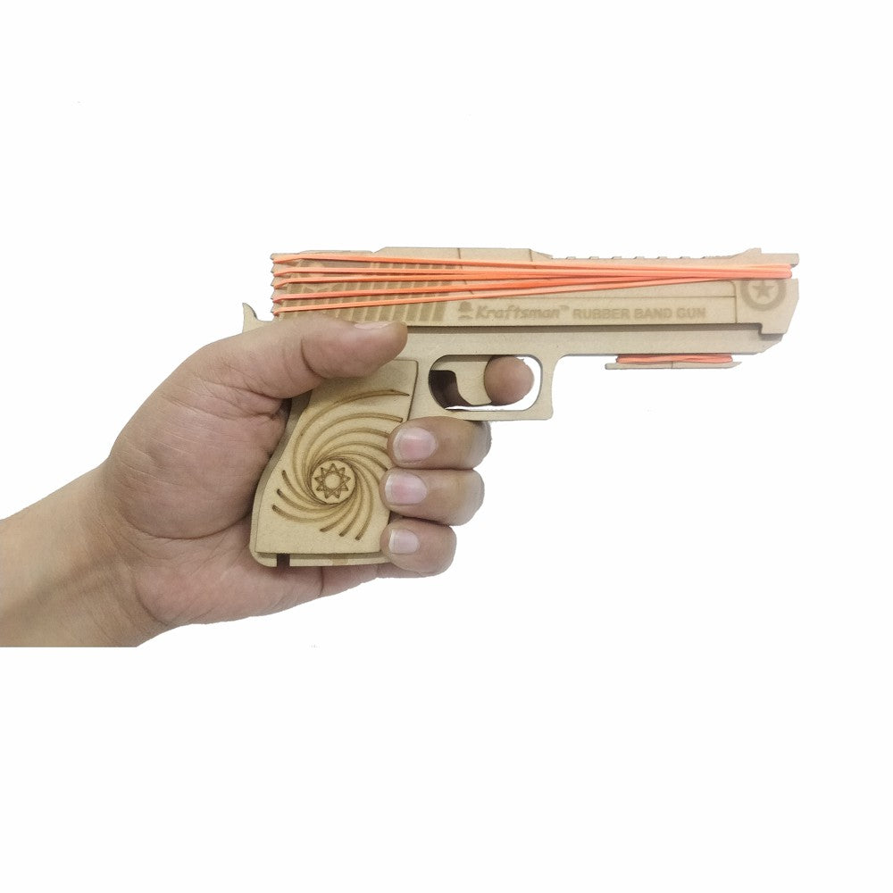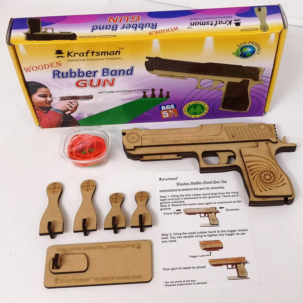 The Wooden Rubber Band Gun Toy by Kraftsman is made up of high quality engineered wood and 100% eco-friendly toy for children, Kids and adults of all age groups. The product is made of high quality pine wood by highly experienced woodworkers and purely handcrafted.
